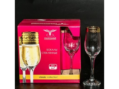 Набор 6 бокалов д/шампанского с рис. "Русский узор" GE09-160